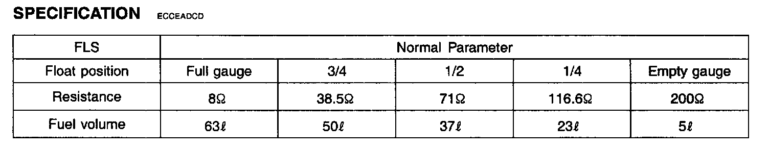 3. Measure resistance between terminal 1 and 3 of the Fuel Level Sensor connector during lining fuel float up and down (To Component Side).