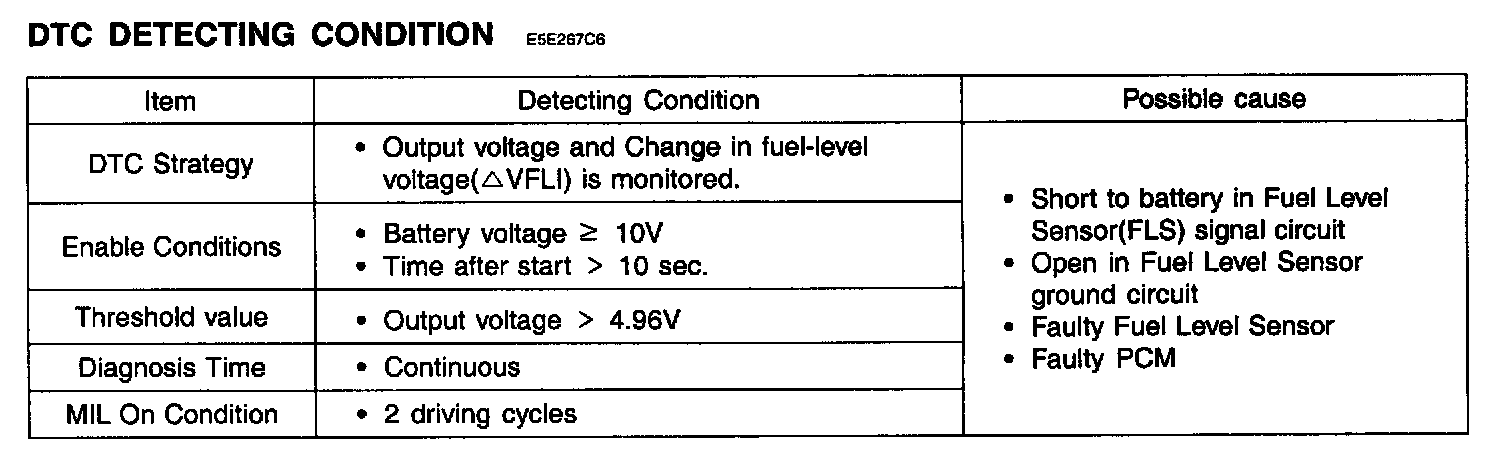 It the sensor output voltage is higher than 4.96V the PCM determines that a fault exists and a DTC is stored.