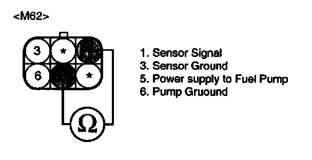 3. Measure resistance between terminal 1 and 3 of the Fuel Level Sensor connector during lifting fuel float up and down (To Component Side).