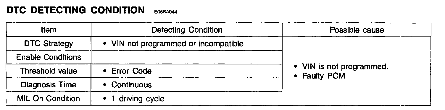 If the VIN writing is not programmed or incompatible, the PCM determines that a fault exists and a DTC is stored.