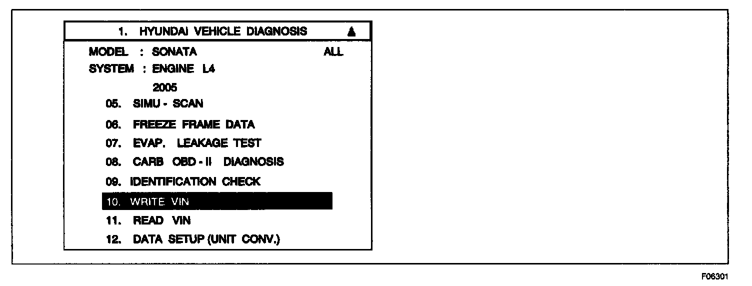 3. Perform VIN writing procedure according to the direction on the scantool screen and go to "Verification of Vehicle Repair" procedure.