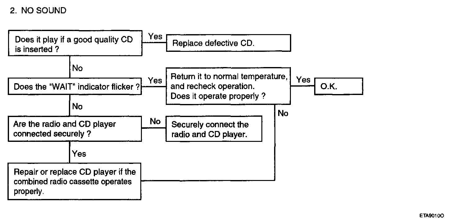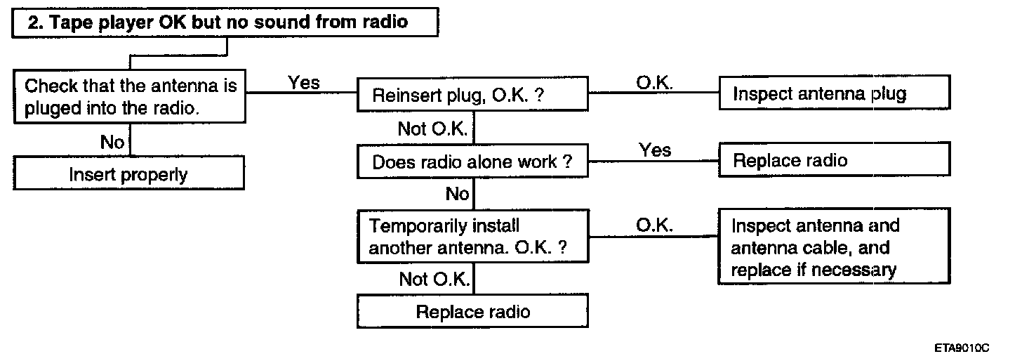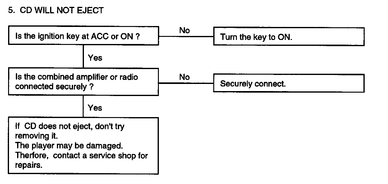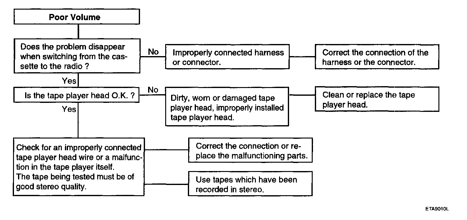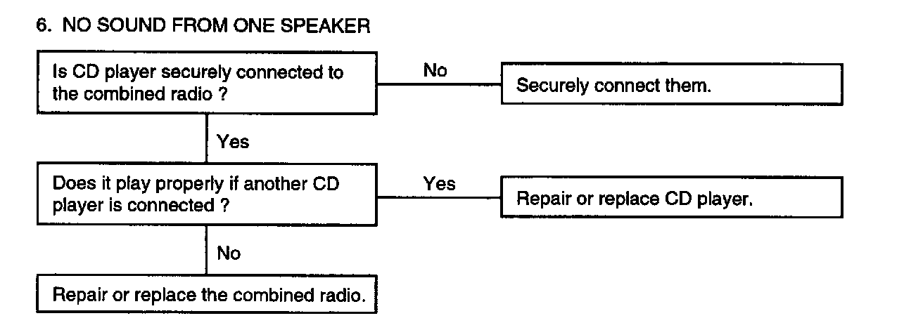 AUDIOThere are six areas where a problem can occur: wiring harness, the radio, the cassette tape deck, the CD player, the speaker, and antenna.Troubleshooting enables you to confine the problem to a particular area.