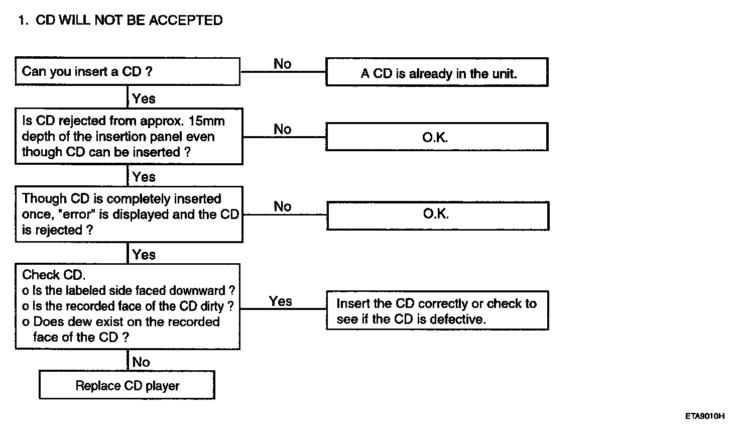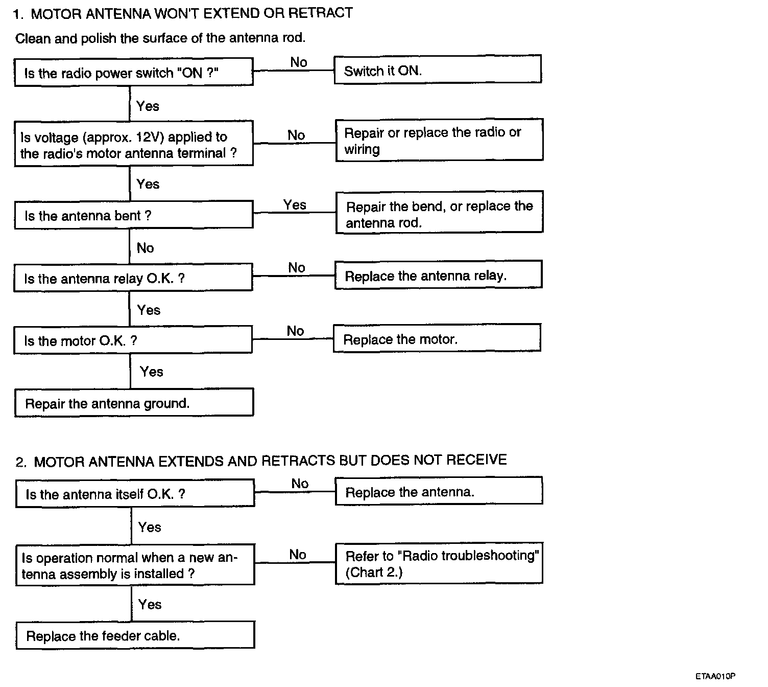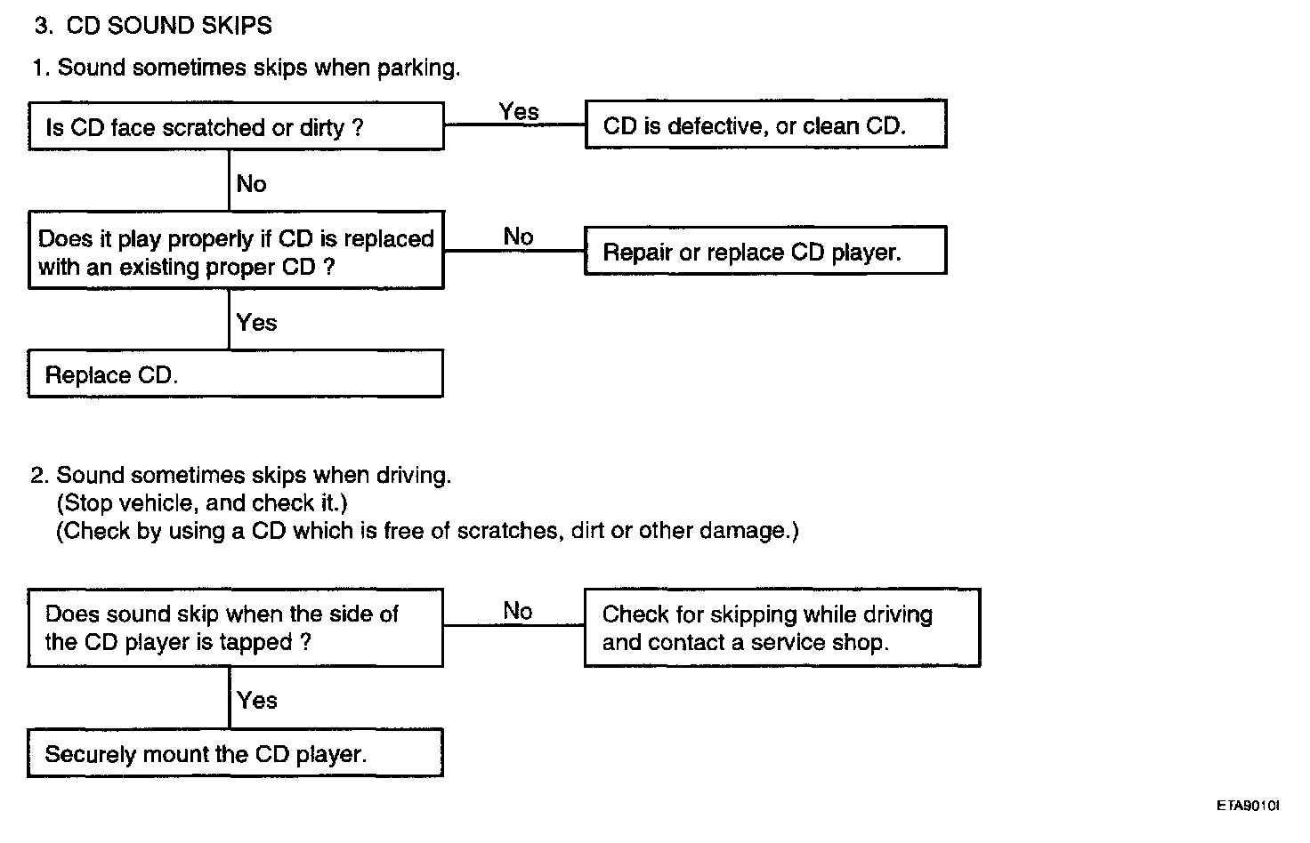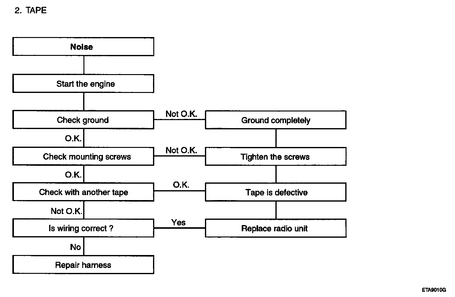 AUDIOThere are six areas where a problem can occur: wiring harness, the radio, the cassette tape deck, the CD player, the speaker, and antenna.Troubleshooting enables you to confine the problem to a particular area.