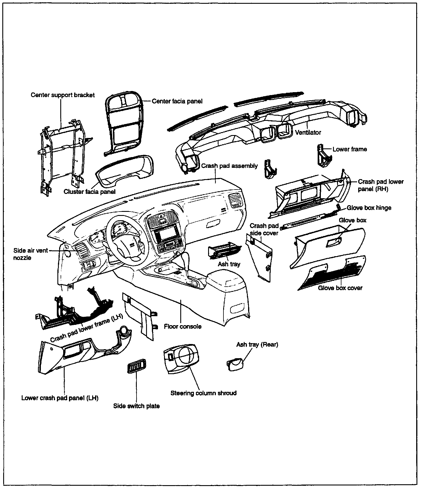 20. Remove the crash pad center panel after removing the 6 screws.