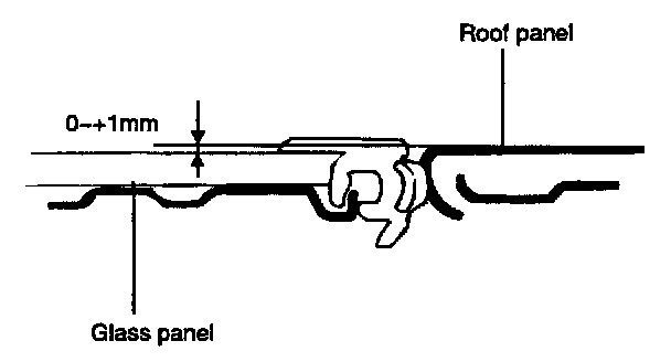 2. Loosen the nuts holding the glass panel and adjust the gap between the glass panel and roof panel.