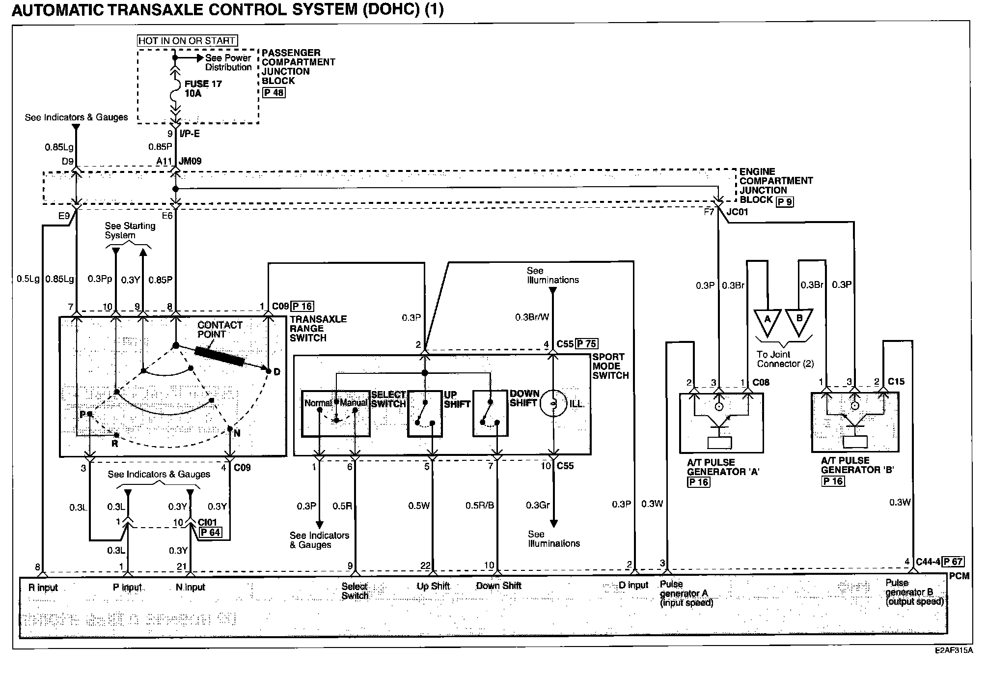 Automatic Transaxle Control System (DOHC) (3) Connector Pin Outs: