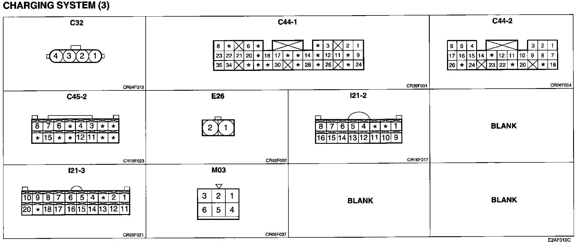 Charging System (3) Connector Pin Outs: