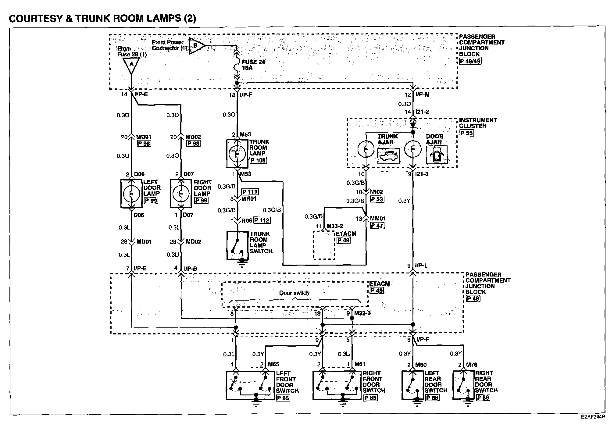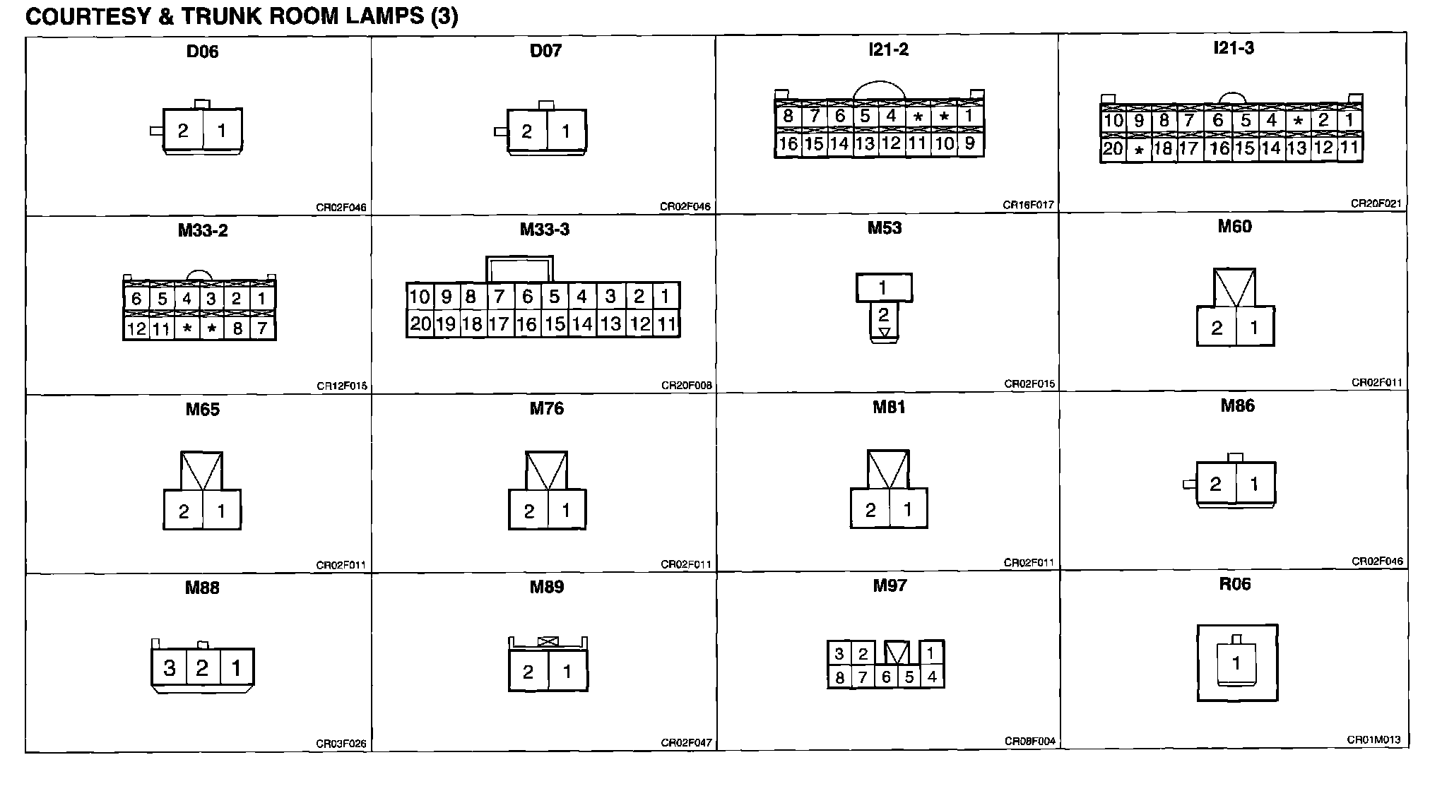 Courtesy And Trunk Room Lamps (3) Connector Pin Outs:
