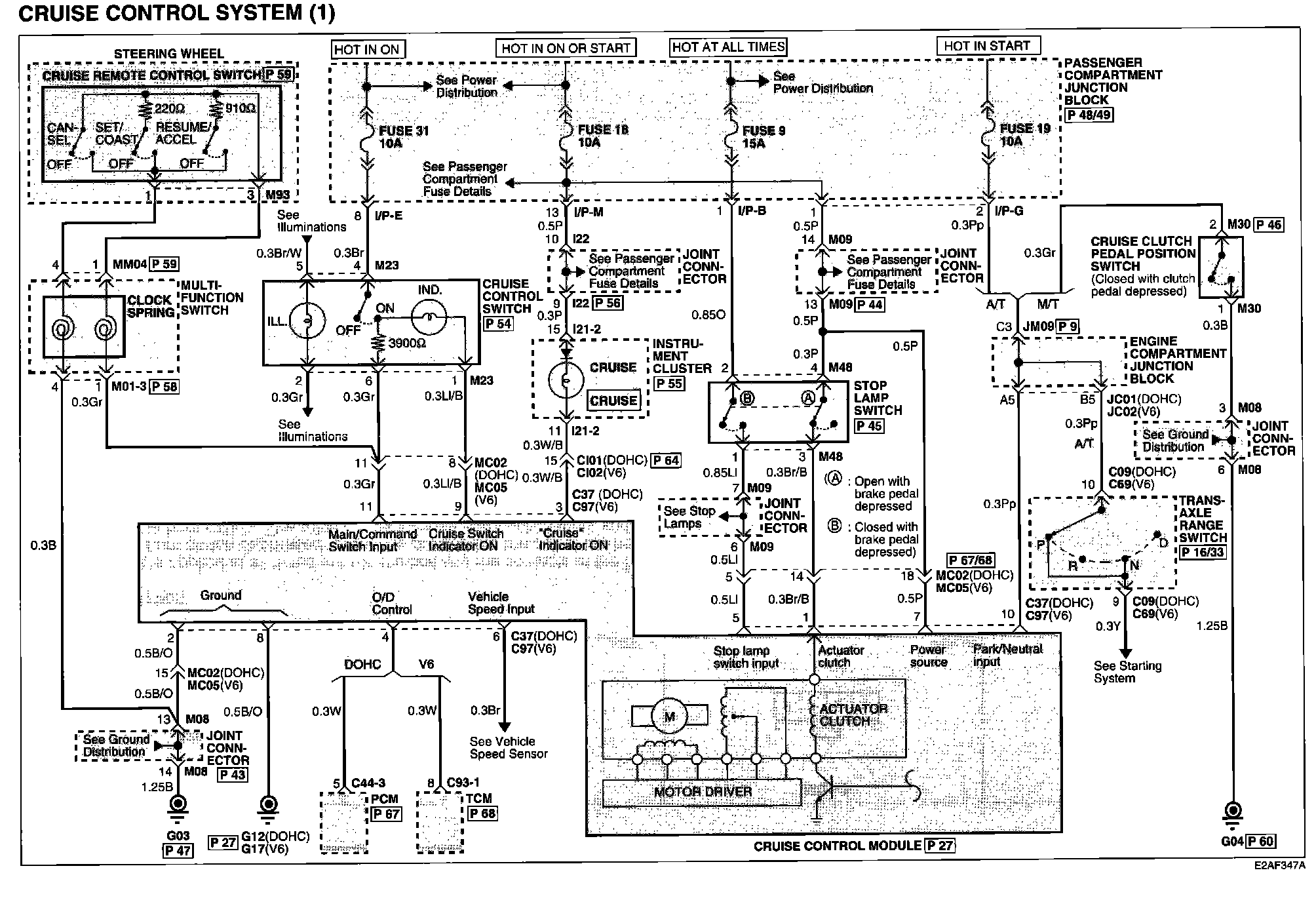 Cruise Control System (2) Connector Pin Outs: