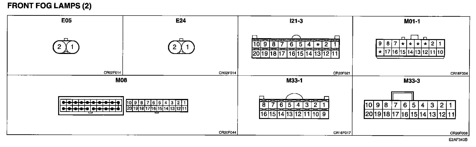 Front Fog Lamps (2) Connector Pin Outs: