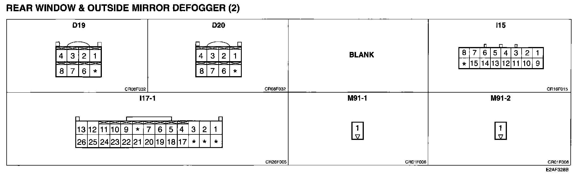 Rear Window And Outside Mirror Defogger (2) Connector Pin Outs:
