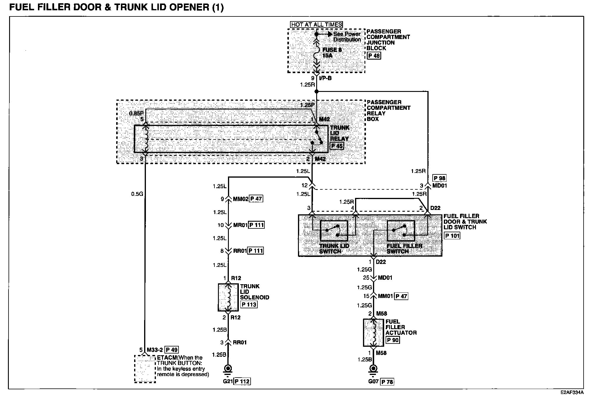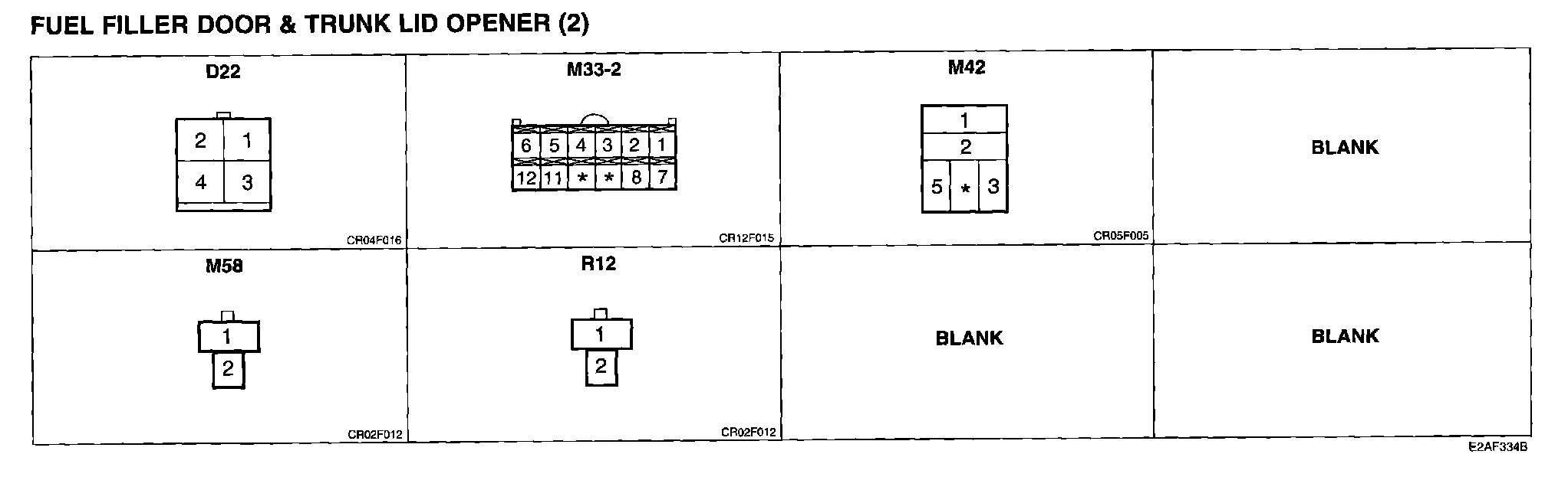 Fuel Filler Door And Trunk Lid Opener (2) Connector Pin Outs: