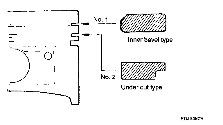 2. Check each piston ring for breakage, damage and abnormal wear. Replace the defective rings. When the piston requires replacement, its rings should also be replaced.