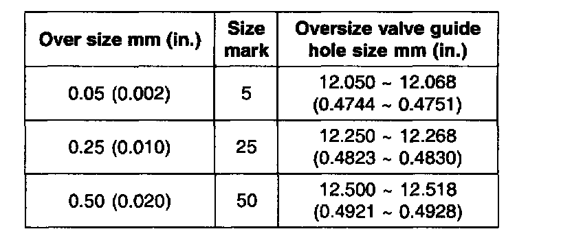 VALVE GUIDE OVERSIZES