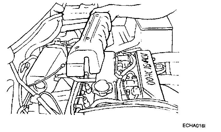 4. Remove the P.C.V. valve and brake boost vacuum hose.