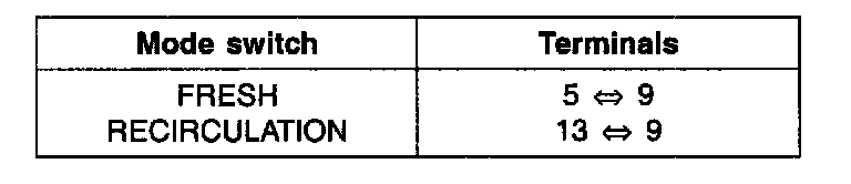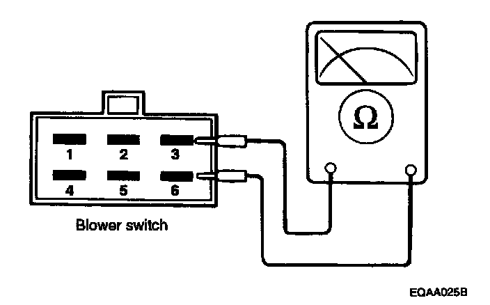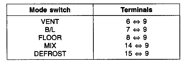 Blower Switch (Manual Temperature Control)Check for continuity between terminals as shown below.