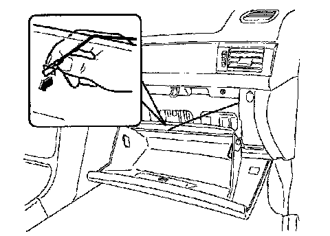2. Lower the glove box down after taking out the damper strap from the hole.