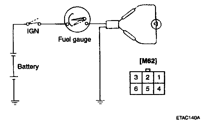 3. Turn the ignition switch to the ON, and then check that the bulb lights up and the fuel gauge needle moves to full.