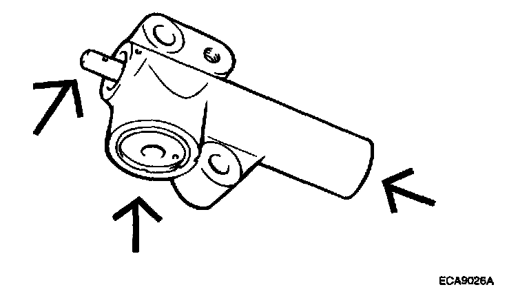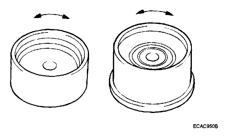 2. Inspect the tensioner pulley and the idler pulley for easy and smooth rotation and check for play or noise. Replace if necessary.