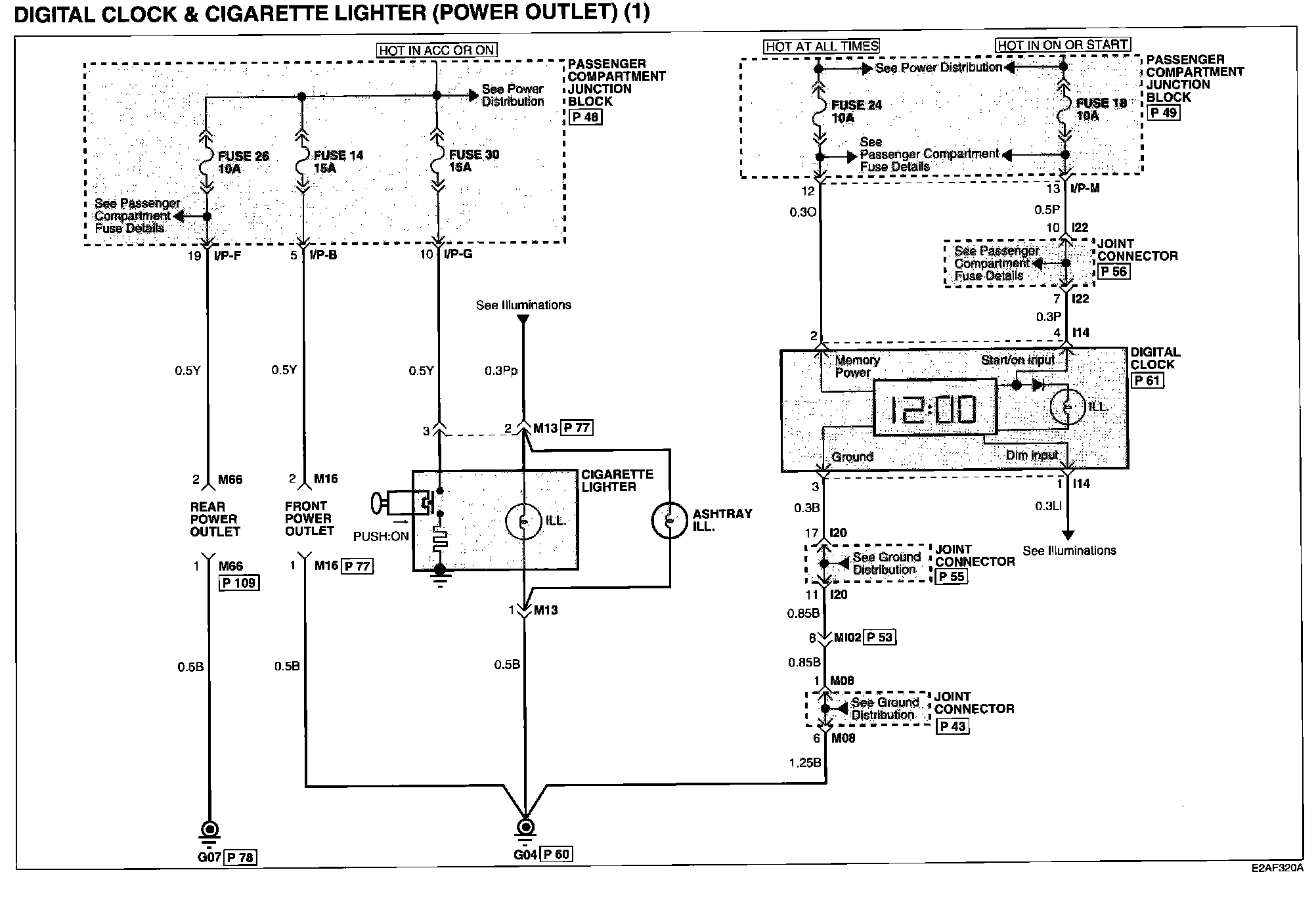 Digital Clock And Cigarette Lighter (Power Outlet) (2) Connector Pin Outs: