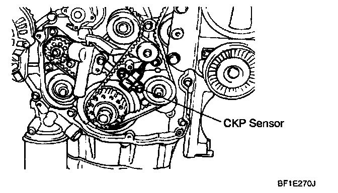The Crankshaft Position Sensor is a Hall-effect sensor that senses the Crank angle (piston position) of each cylinder and converts it into a pulse signal. Based on the input signal, the ECU computes the engine speed and controls the fuel injection timing and ignition timing.