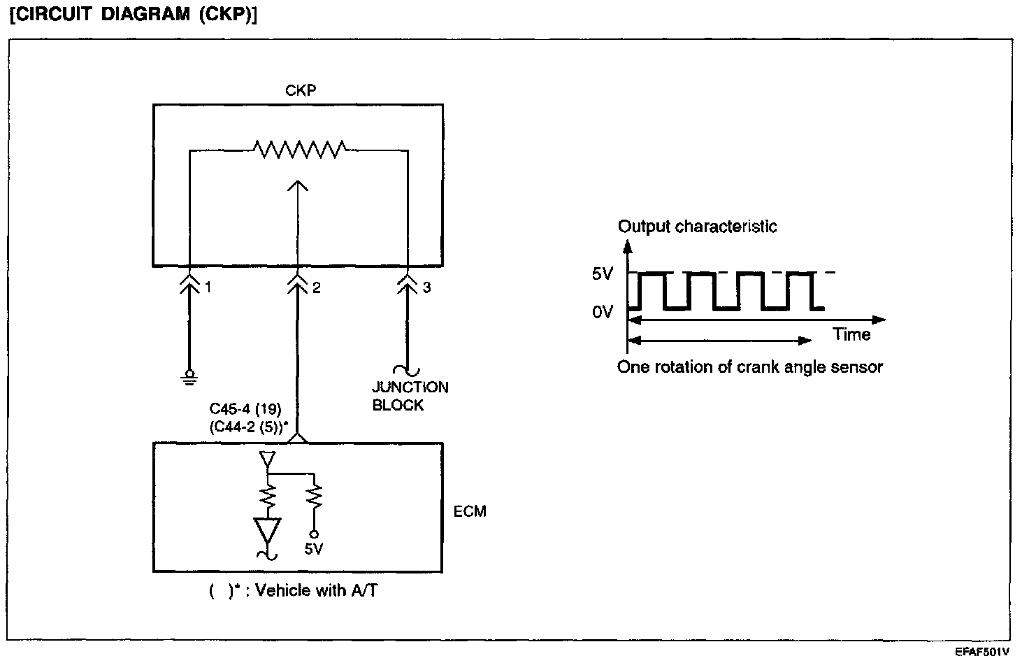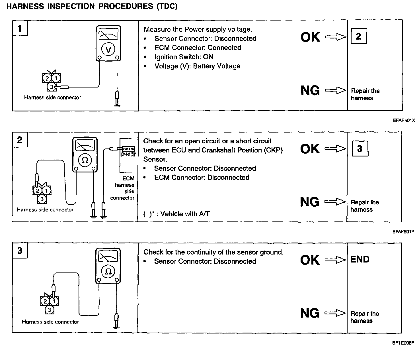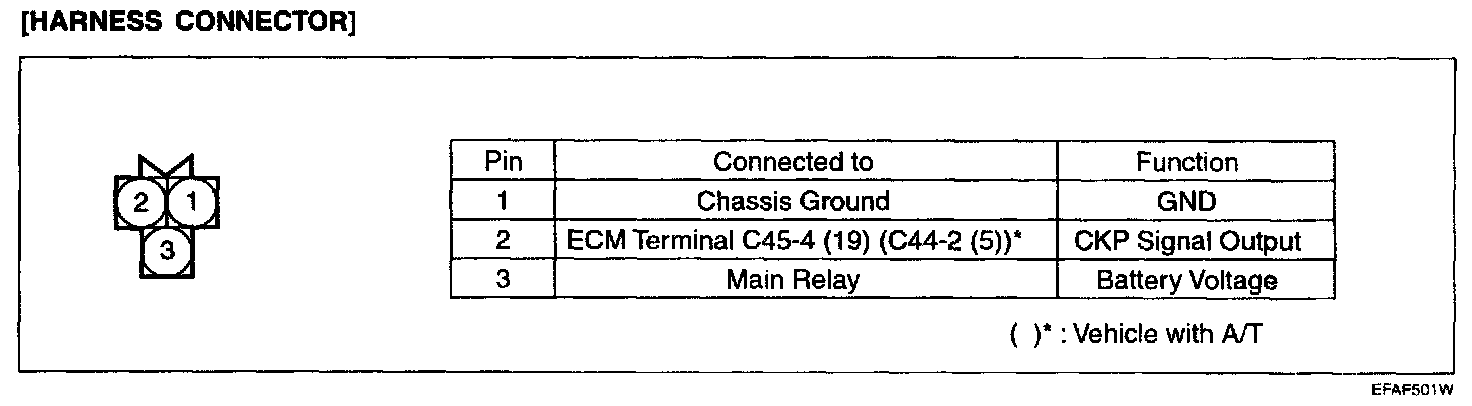 1. If unexpected shocks are felt during driving or the engine stalls suddenly, shake the crankshaft position sensor harness. If this causes the engine to stall, check for poor sensor connector contact.