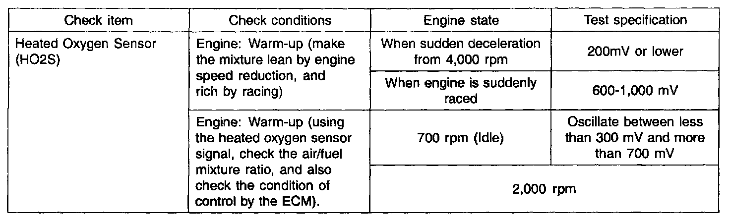 2. If the HO2S check results are normal, but the sensor output voltage is out of specification, check for the following items (related to air fuel ratio control system):