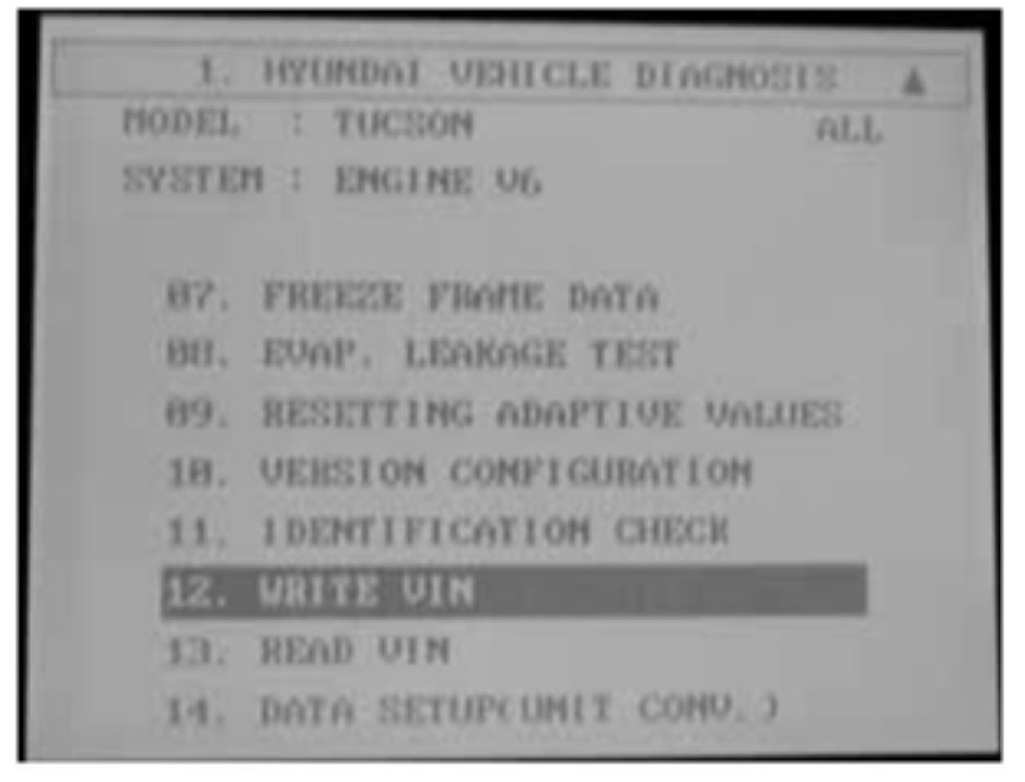 9. Select Write VIN and press ENTER.