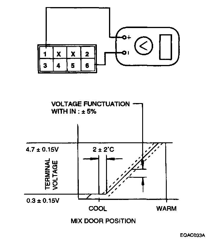 Checking (Automatic Temperature Control)1. Connect voltmeter to pin 1 (+) and pin 6 (-).