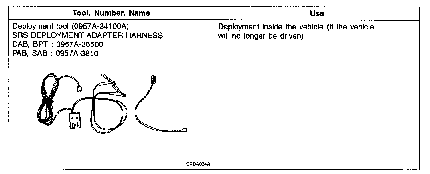 Before disposing of a vehicle equipped with an airbag, or prior to disposing of the airbag module, be sure to first follow the procedures described below to deploy the airbag.