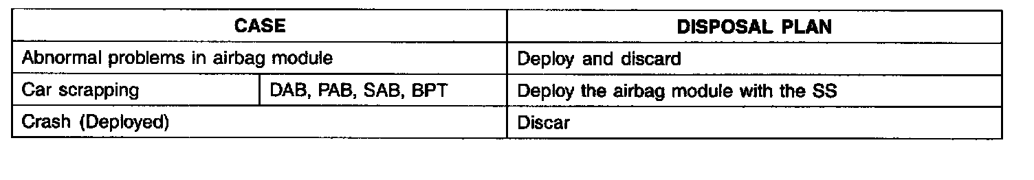 After deployment, the airbag module should be disposed of in the same manner as any other scrap part, except that the following points should be carefully noted during disposal.