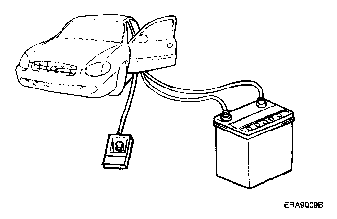 2. Disconnect the negative (-) and positive (+) battery cables from the battery terminals, and then remove the battery from the vehicle
