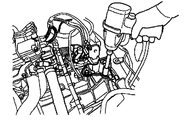 12. Attach the special tools, engine support fixture, (J28467-B, J28467-125) to the engine hooks.