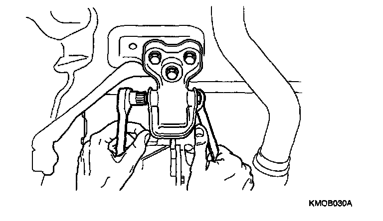 c. When installing the front roll stopper mounting bracket, be especially careful not to crush the insulator. If crushed, idle vibration may occur.