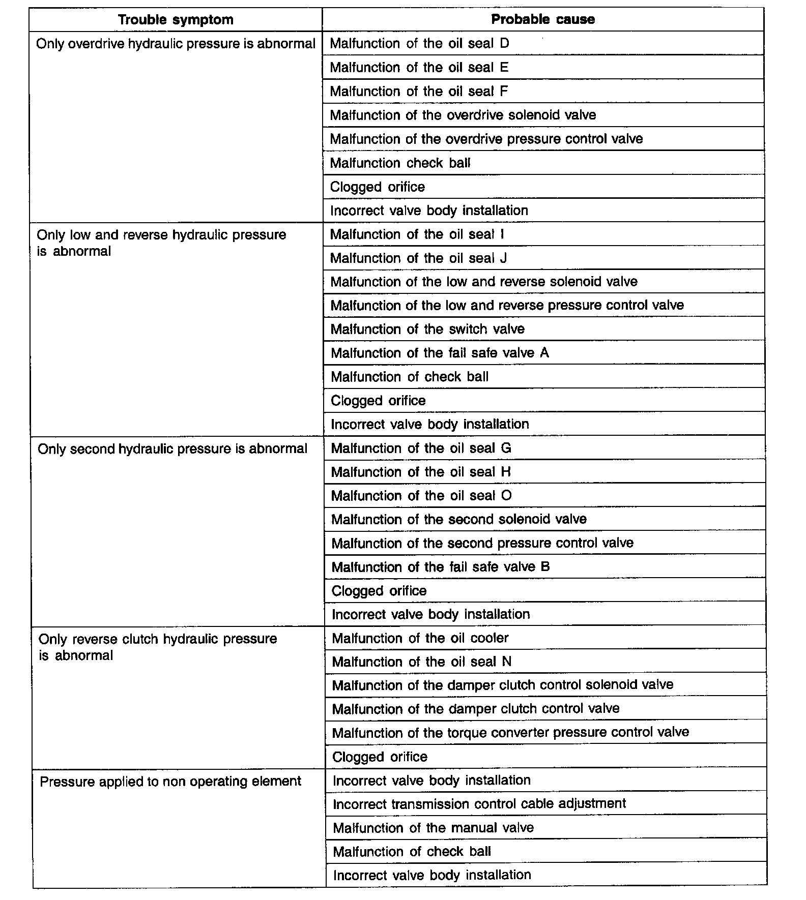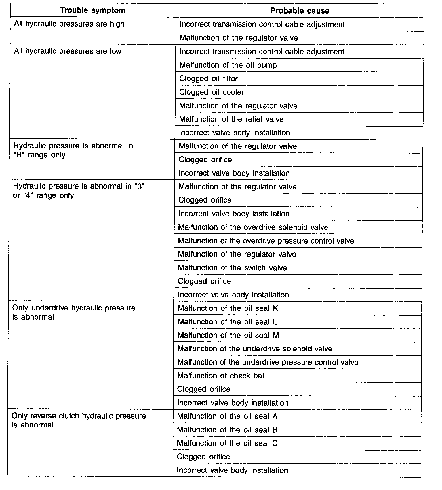 HYDRAULIC PRESSURE TEST DIAGNOSIS TABLE