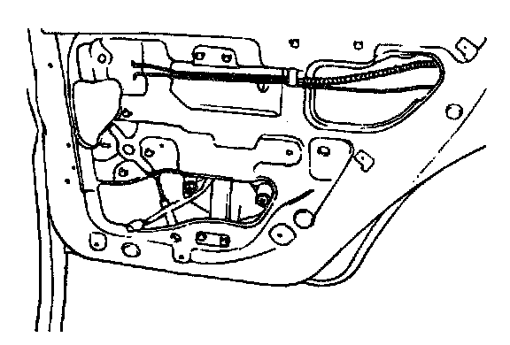 9. Remove the door regulator channel mounting bolts and then remove the door regulator assembly.