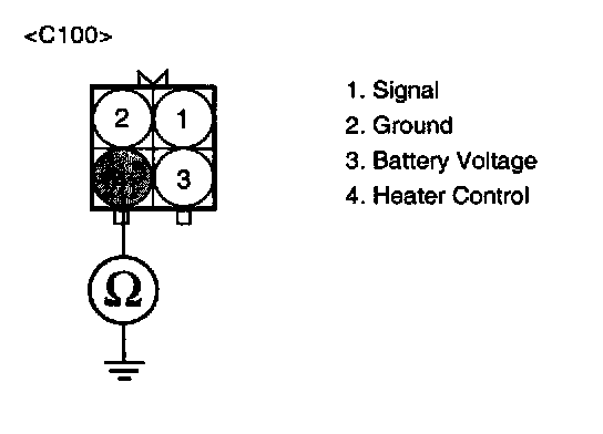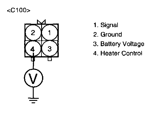 3. Measure voltage between terminal 4 of the HO2S heater harness connector and chassis ground.