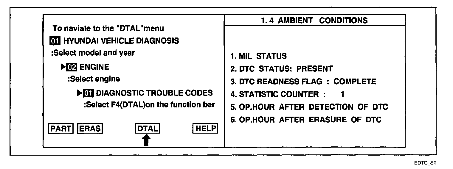 2. Press F4(DTAL) to select DTC information from the DTCs menu.