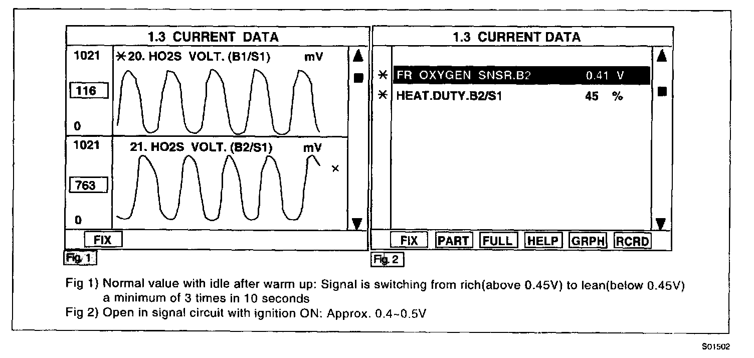 2. Warm up the engine to normal operating temperature and check that HO2S signal is active.
