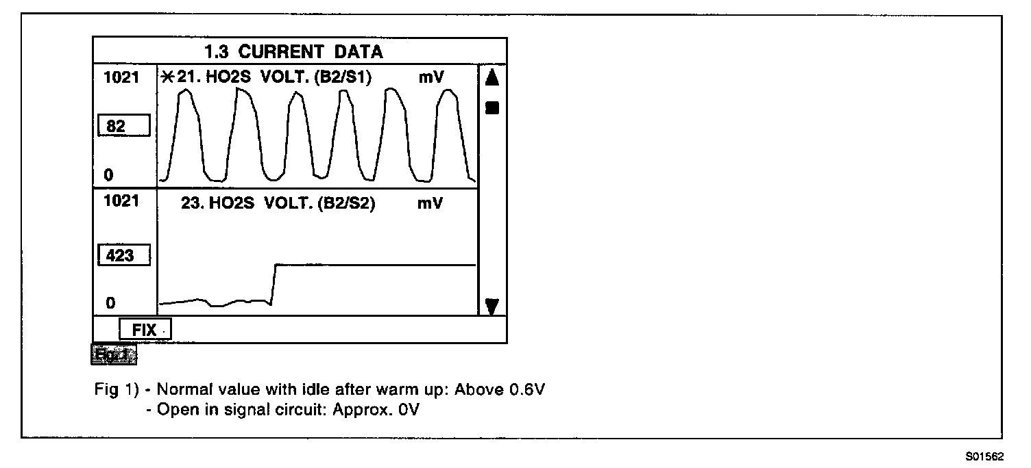 1. Warm up the engine to normal operating temperature and check that HO2S signal is active.