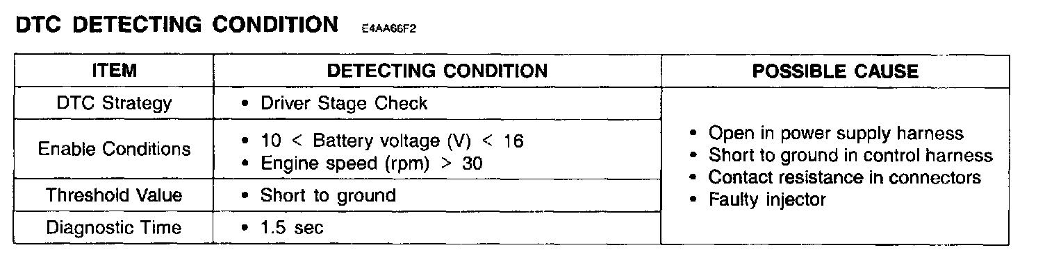 - Check for a open in the power supply circuit between the main relay and the Injector.