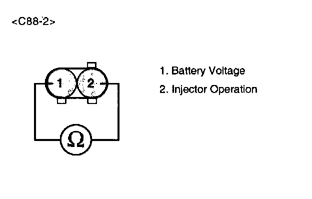 3. Measure resistance between terminals 1 and 2 of the injector connector(Component side).