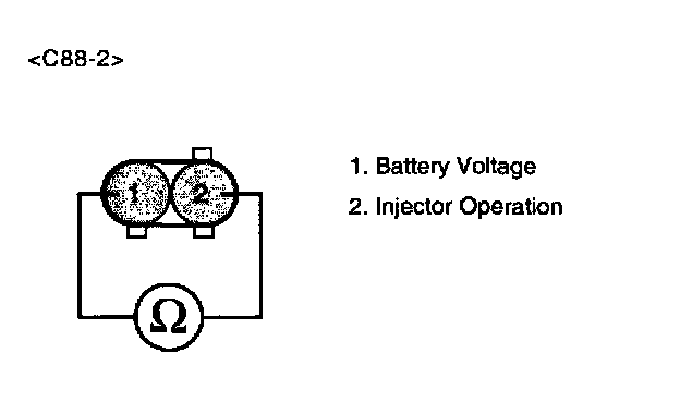 3. Measure resistance between terminals 1 and 2 of the injector connector(Component side).