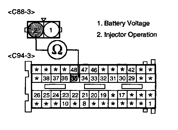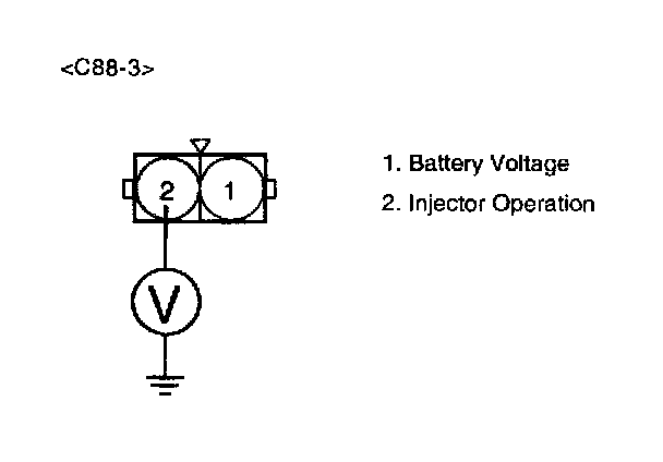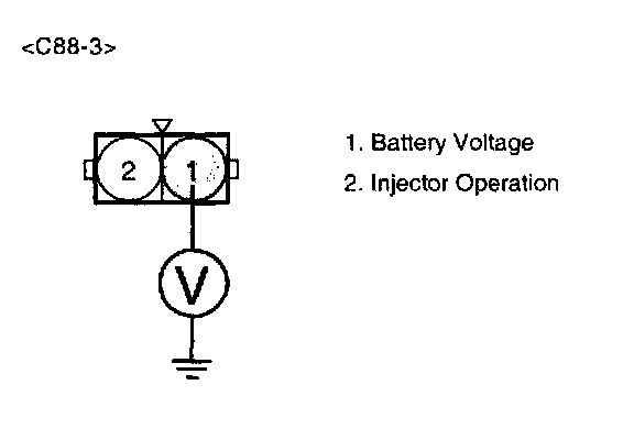 2. Measure voltage between terminal 1 of the injector harness connector and chassis ground