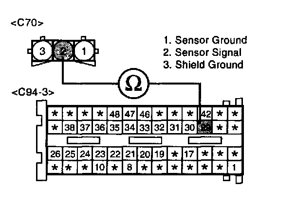3. Measure resistance between terminals 1 and 2 of the sensor connector(Component side).