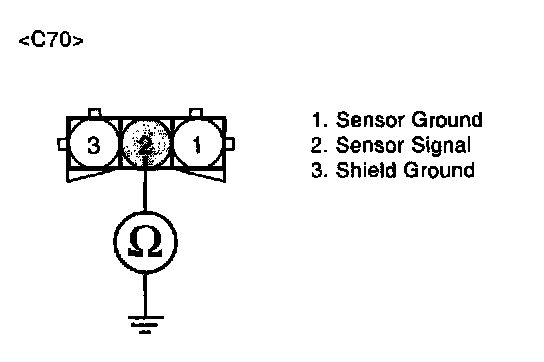 2. Measure resistance between terminal 2 of the sensor harness connector and chassis ground.