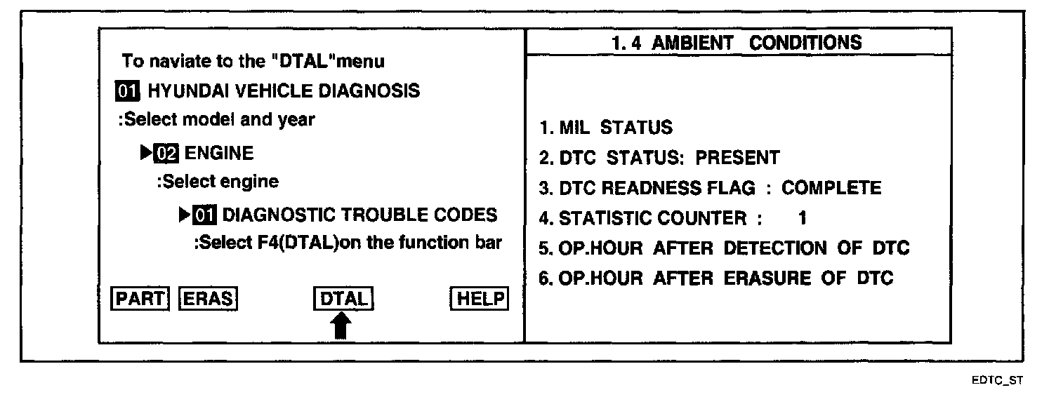 2. Press F4(DTAL) to select DTC information from the DTCs menu.