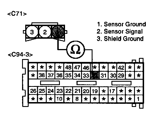 3. Measure resistance between terminals 1 and 2 of the sensor connector(Component side).