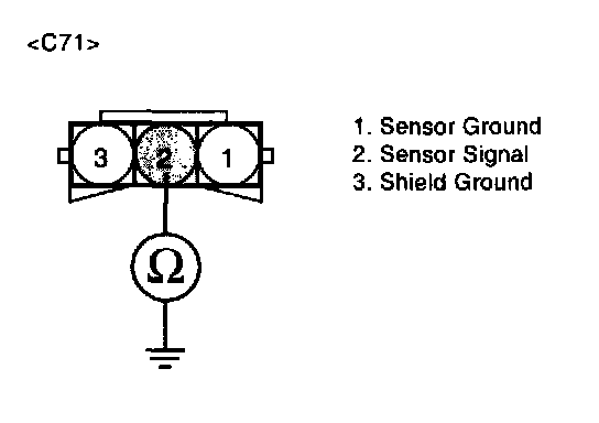 2. Measure resistance between terminal 2 of the sensor harness connector and chassis ground.
