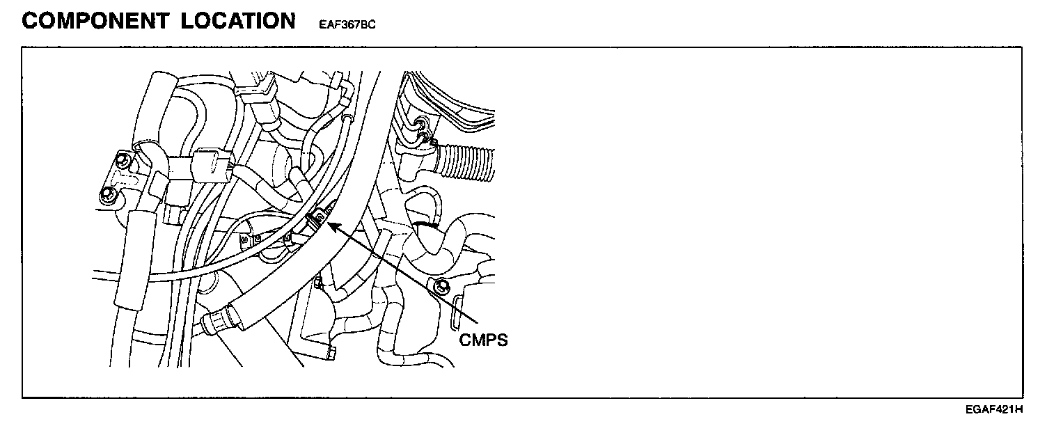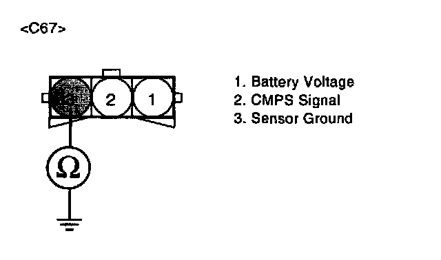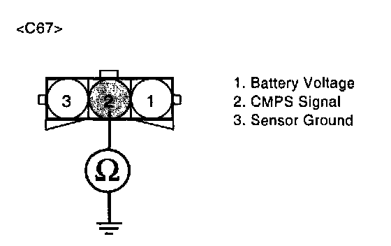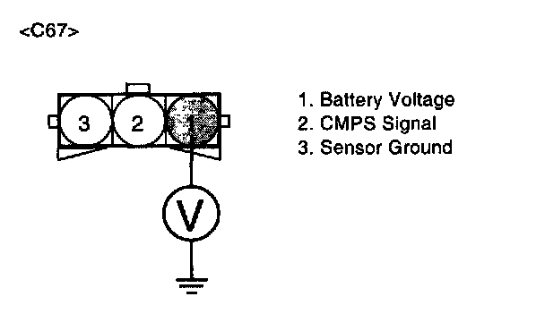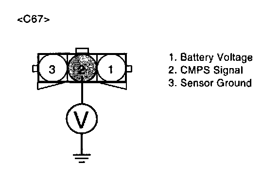 The Camshaft Position Sensor (CMPS) is a sensor that detects the compression TDC of the N0.1 cylinder. The CMPS consists of a hall type sensor and a target on the end of the intake camshaft. When the target triggers the sensor, the sensor voltage is 5 V. If not, the sensor voltage is 0 V These CMPS signal is sent to the ECM and the ECM uses the CMPS signal for synchronizing the firing of sequential fuel injectors.